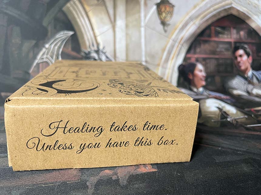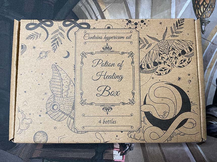 Abbiamo così creato un box che desse l’idea della guarigione nel mondo fantasy. Gli elementi richiamano contesti celtici, druidici e astronomici. La parte centrale pone attenzione sugli elementi della scatola: un box che contiene 4 boccette. Nelle parti laterali ci sono elementi decorativi e scritte che riprendono il contesto guarigione. Il retro riporta tutti i dettagli della scatola, frasi motivazionali e gli elementi identificativi del brand.