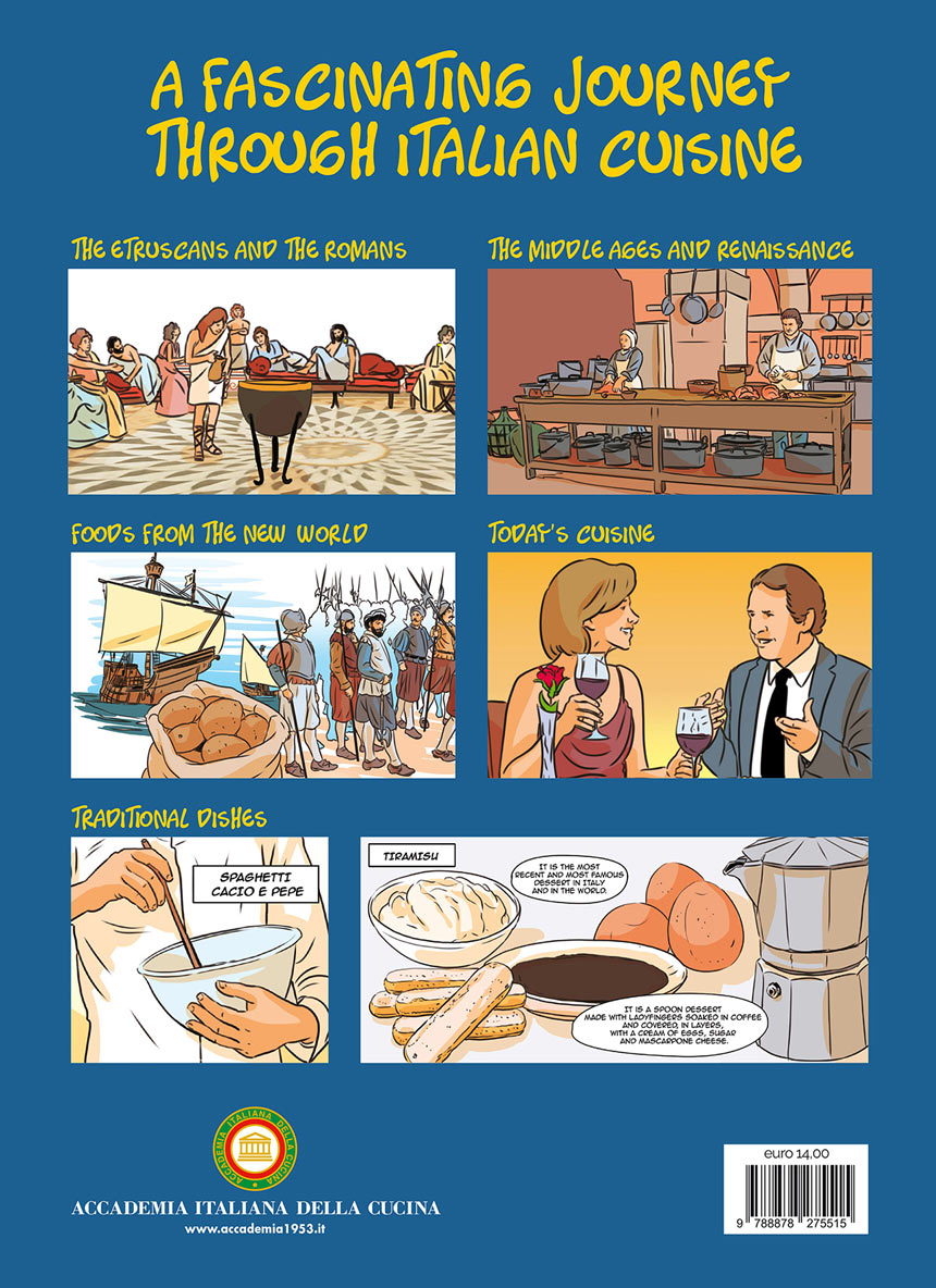 La cucina italiana è famosa nel mondo, ma probabilmente non tanto quanto meriti. In questo fumetto di Accademia Italiana Della Cucina si parte proprio dagli inizi della nostra storia culinaria per arrivare ai piatti più iconici che tutti conosciamo.